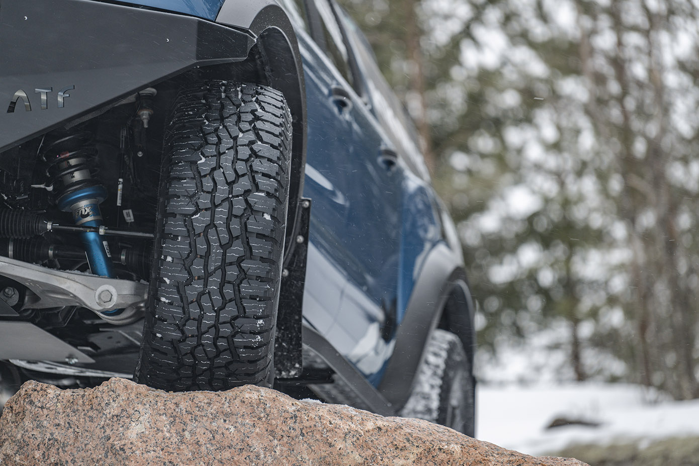 Дизайн протектора разработан для идеального поведения автомобиля на любой дороге. Агрессивные шашки плечевых зон Summit Sidewalls способствуют выгребанию из сложных и рыхлых участков, инновация Canyon Cuts – х-образные канавки, обеспечивающие высокое сцепление на непредсказуемых покрытиях. Широкое расстояние между блоками протектора не дают задерживаться грязи и воде, что также способствует повышению управляемости в разных погодных условиях.